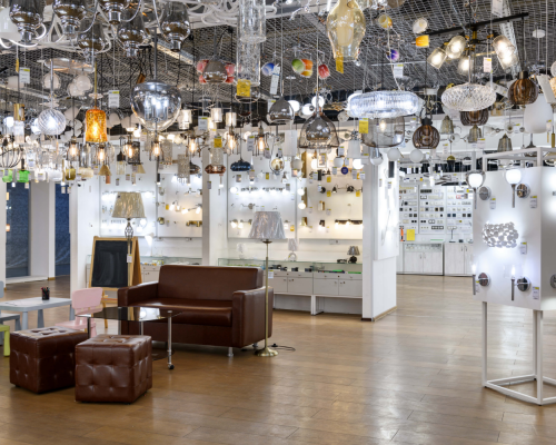- Выставочный зал 550 кв. м. с интересными образцами светильников